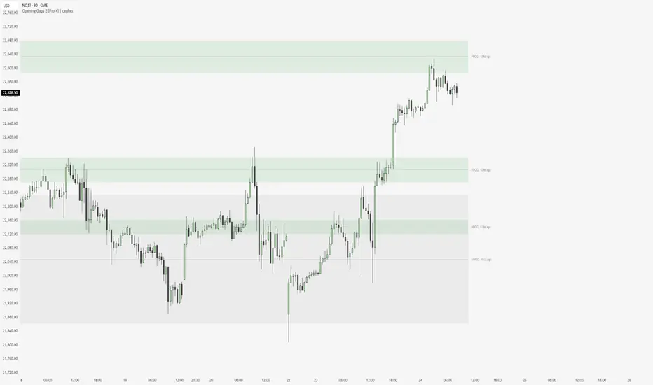 This indicator is for educational purposes only. Opening gaps are one tool among many - they don't guarantee fills or reversals. Always use proper risk management and never trade based on a single indicator. Past gap fills don't guarantee future performance. Do your own analysis.