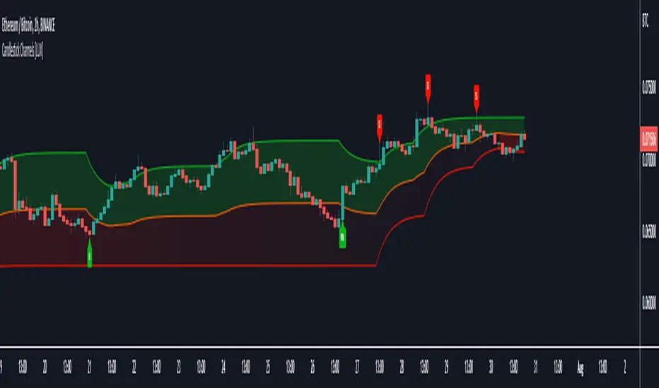 Candlesticks patterns are commonly used by traders to detect potential reversals or continuation periods in the price. It can be of interest to use them as core elements in the calculation of more classical indicators, this can allow us to filter out potential false signals returned by candlestick patterns by shifting the source of interpretation towards the channel extremities instead.