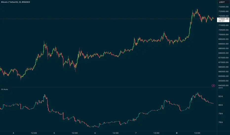 Open Interest data is not supplied by every exchange to TradingView, however it is available on Binance Perpetual Futures. This script helps the crypto trader to identify the equivalent Binance Perpetual Futures Chart that has Open Interest Data available and automatically displays this on the traders chart.