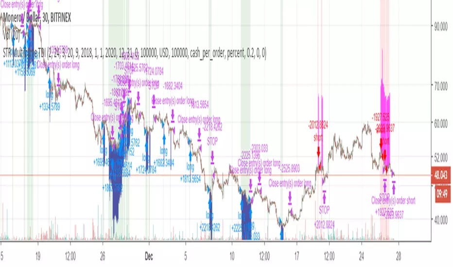 This is a strategy (backtest) script which uses multitimeframe TDI (only the upper side of the indicator) to trade XMRUSD on 30 min.