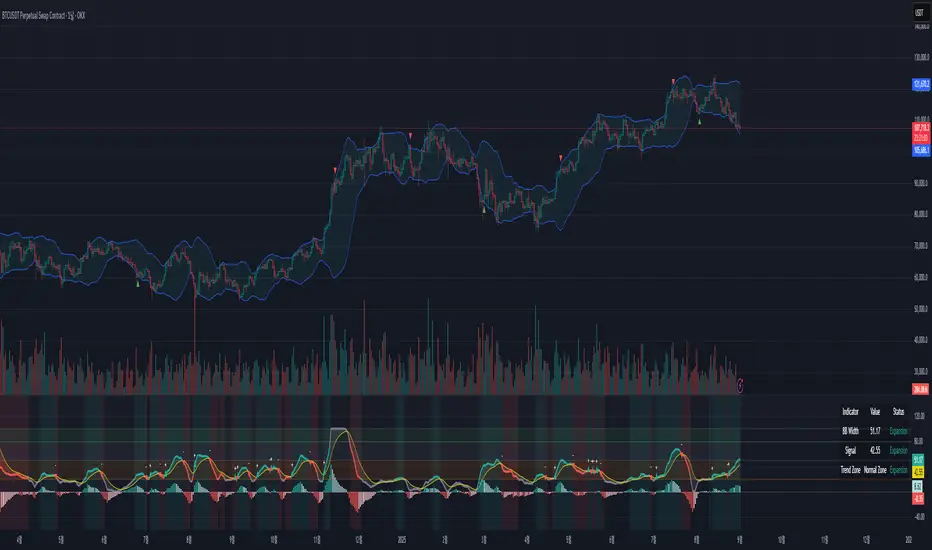 OB/OS Zones: Detects Over-Expansion and Over-Contraction states to spot potential volatility breakouts or squeezes.
