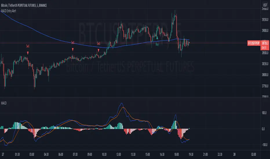This Indicator will only give you potential entry base on MACD strategy combine with a 200 EMA