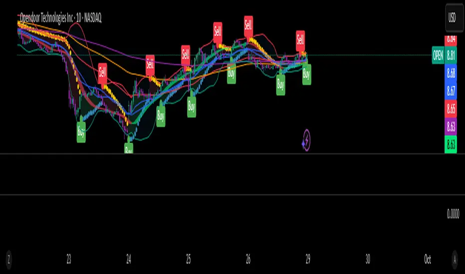 Exponential Moving Averages (20/50/100/200) — customizable lengths, colors, and offsets.