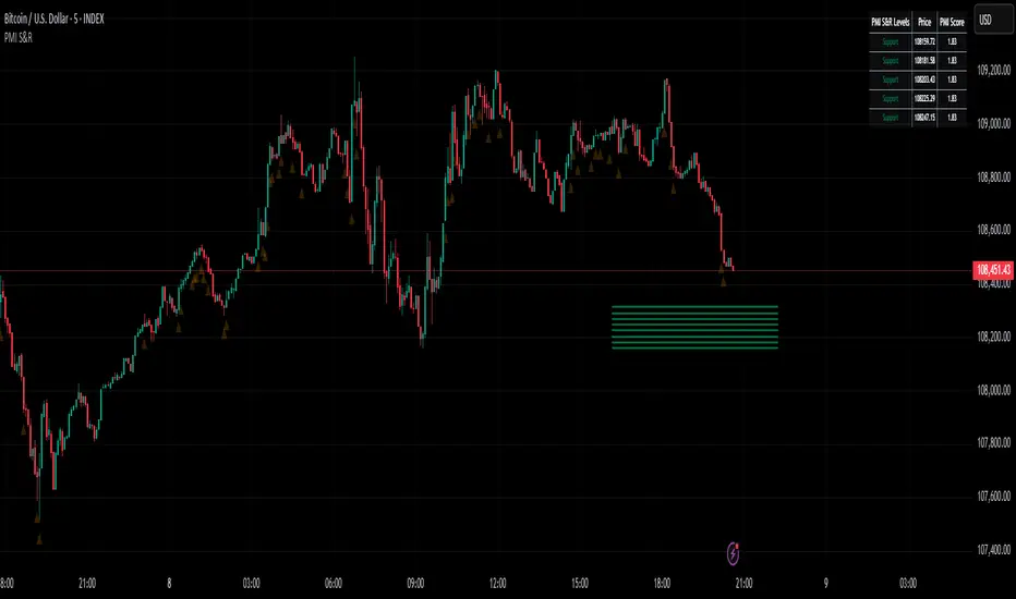 Support/Resistance Colors: Choose colors that contrast well with your chart theme Line Width: Thicker lines (3-4) for better visibility on busy charts Show PMI Scores: Toggle labels showing statistical strength Label Size: Adjust based on screen resolution and chart zoom level