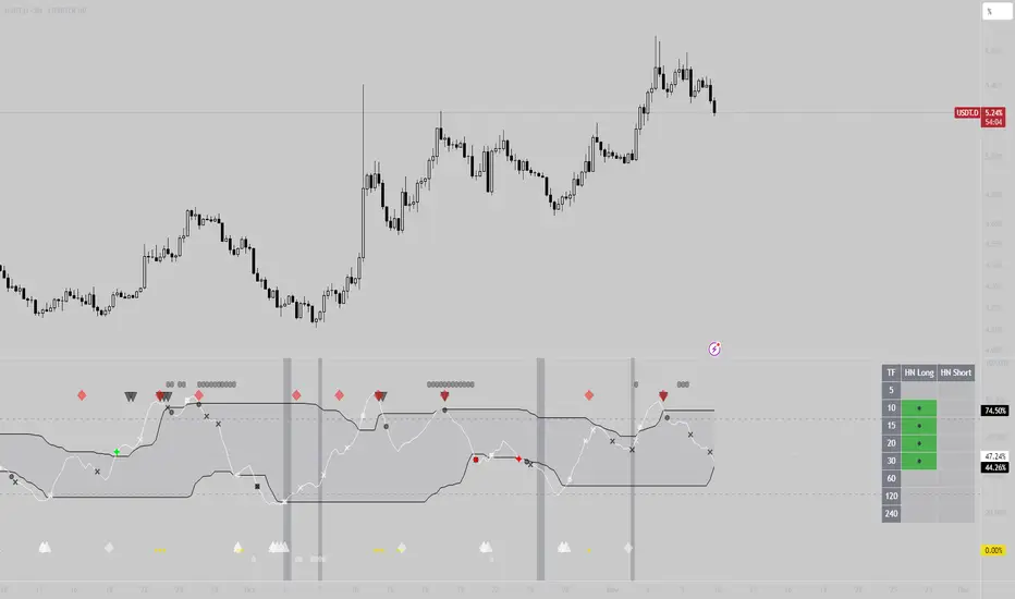 A configurable momentum and cycle-based indicator designed to highlight potential trend shifts, reversals, and divergences. Combines multiple complementary signal types to give traders filtered, actionable insights without relying on raw price alone.
