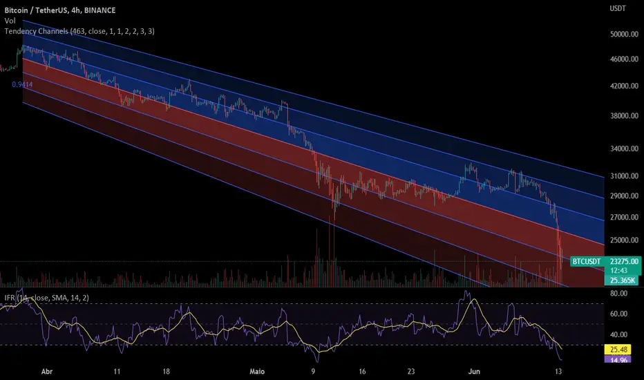 This channel uses "regression channel" from trading view and it multiplies 3 times the supports and resistances, so you can see places to short and to long.