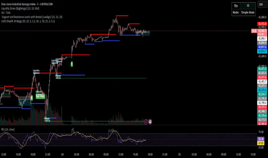 Only works on US30 (CAPITALCOM) 5 Minute chart