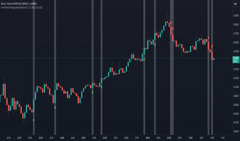 Conclusion: The TechniTrend: Strong Candles Detector is an easy-to-use yet powerful tool for traders who want to identify key candles that signal potential market trends. Its customizable settings allow for fine-tuning to fit different trading styles, whether looking for high-volume breakouts or significant price movements. The indicator offers both a visual and configurable alert system to help traders make more informed decisions.