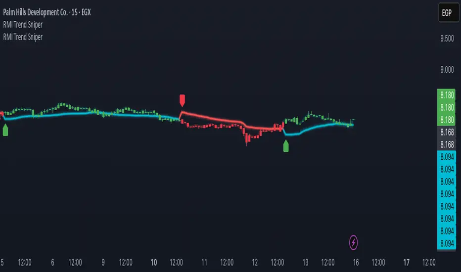 The "RMI Trend Sniper" is a powerful trend-following indicator designed to help traders identify potential buy and sell signals in the market.