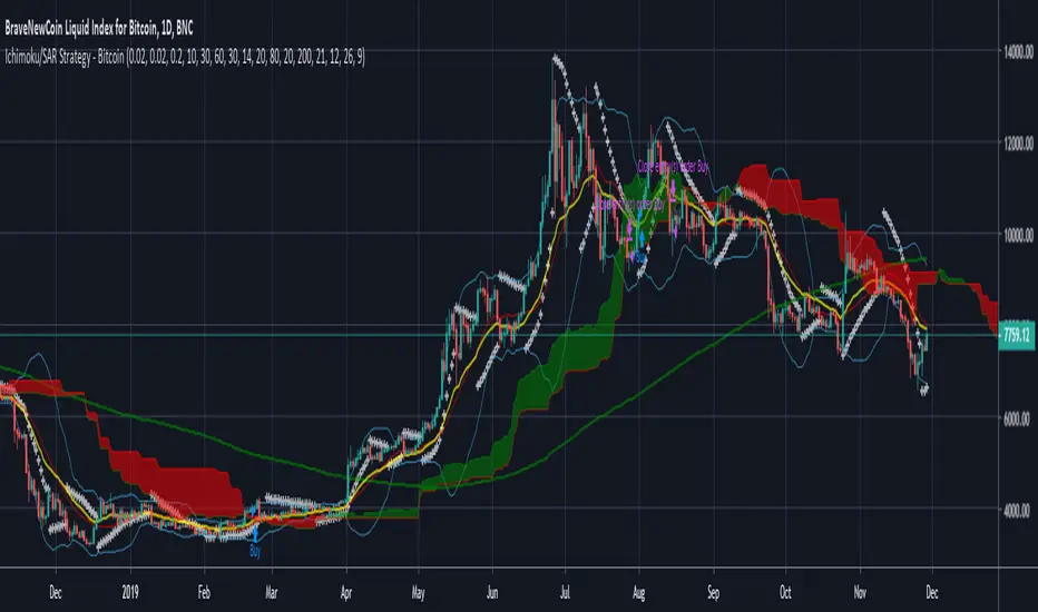 Update: Strategy has been updated to include the Daily Bollinger Bands and Parabolic SAR.In the event of a buy or sell condition being met outside the boundaries of the Bollinger Bands, the signal will be supressed until a candle closes back within the bands.