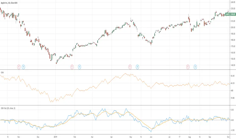 I just took OBV over a period and divided it by the total volume for the same period. So now it's an oscillator from -1 to 1.