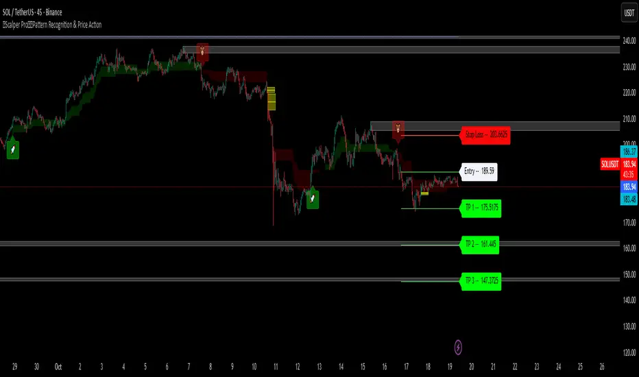Scalper Pro is a comprehensive multi-timeframe trading indicator that combines Smart Money Concepts (SMC) with traditional technical analysis to provide scalpers and day traders with high-probability entry and exit signals. This indicator integrates multiple analytical frameworks into a unified visual system designed specifically for short-term trading strategies.