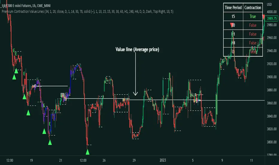 - On default, the value lines retrieved by the contractions will be disabled on timeframes lower than the hourly or daily because it can become unorganized but the option