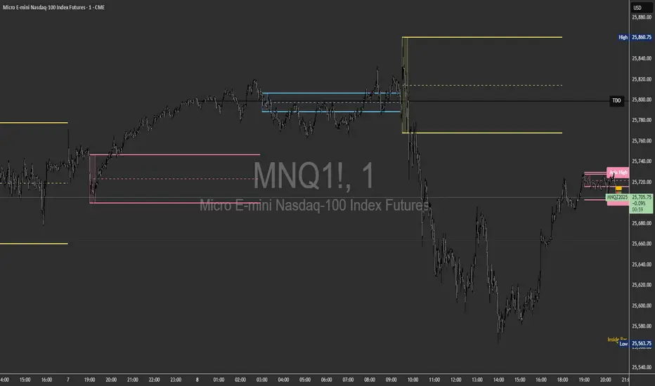 All key visuals are user-configurable: session toggles, colors, transparency, line widths, midline style, label offsets, and extreme-candle timeframes.