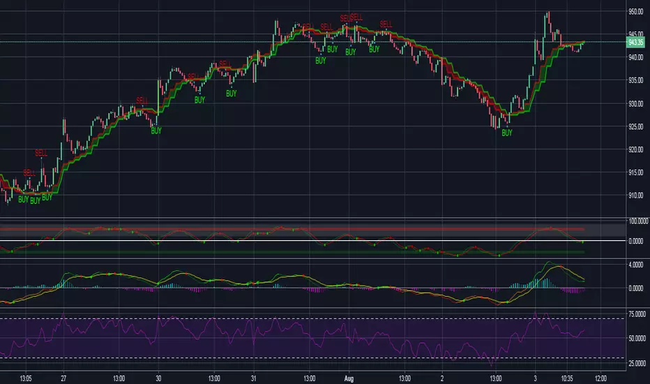 New features: this time we add two lines that can help traders trader safer. When the red line cross above the green line means we are in the downtrend and when the green line cross above the red line, which means we are in a uptrend. This new features will help traders do a safer trade at small time frame.