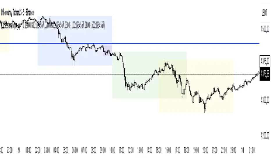 Forex Intraday Sessions Indicator, config time in UTC-4. Support 4 main sessions, smooth end-to-start candles mode, without gaps if your sessions has config like:
