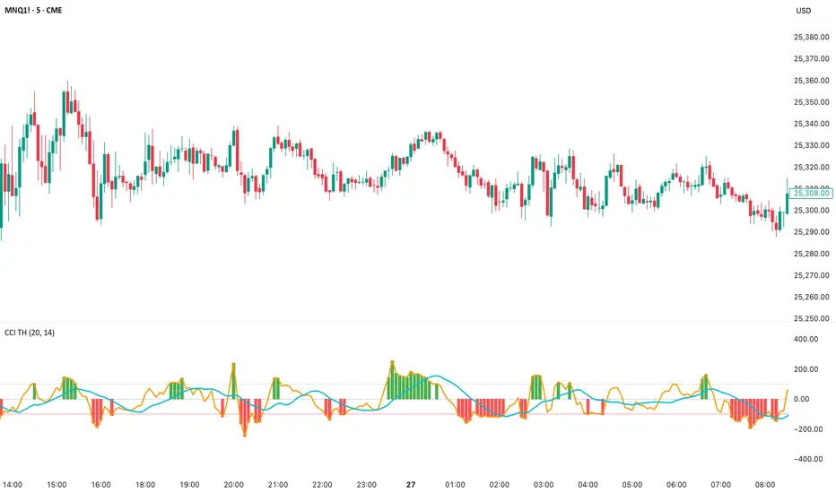 The Custom CCI Indicator by Simon20cent enhances traditional CCI analysis with adjustable smoothing and a momentum-based histogram. The histogram highlights key thresholds, turning green above +100 and red below –100 to clearly identify strong bullish or bearish momentum. Both the CCI and smoothed CCI lines can be toggled for a cleaner view, making this tool effective for spotting momentum shifts, breakout conditions, and potential entry zones with improved clarity.