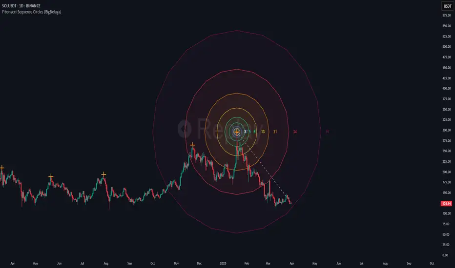 The Fibonacci Sequence Circles [BigBeluga] is a unique and visually intuitive indicator designed for the TradingView platform. It combines the principles of the Fibonacci sequence with geometric circles to help traders identify potential support and resistance levels, as well as price expansion zones. The indicator dynamically anchors to key price points, such as pivot highs, pivot lows, or timeframe changes (daily, weekly, monthly), and generates Fibonacci-based circles around these anchor points.