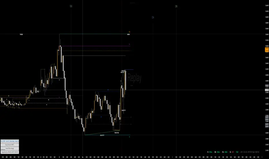 This panel reads the 10:45 → 11:00 ET window on NQ and checks for sweeps of the 10:45 candle with SMT confirmation from ES.