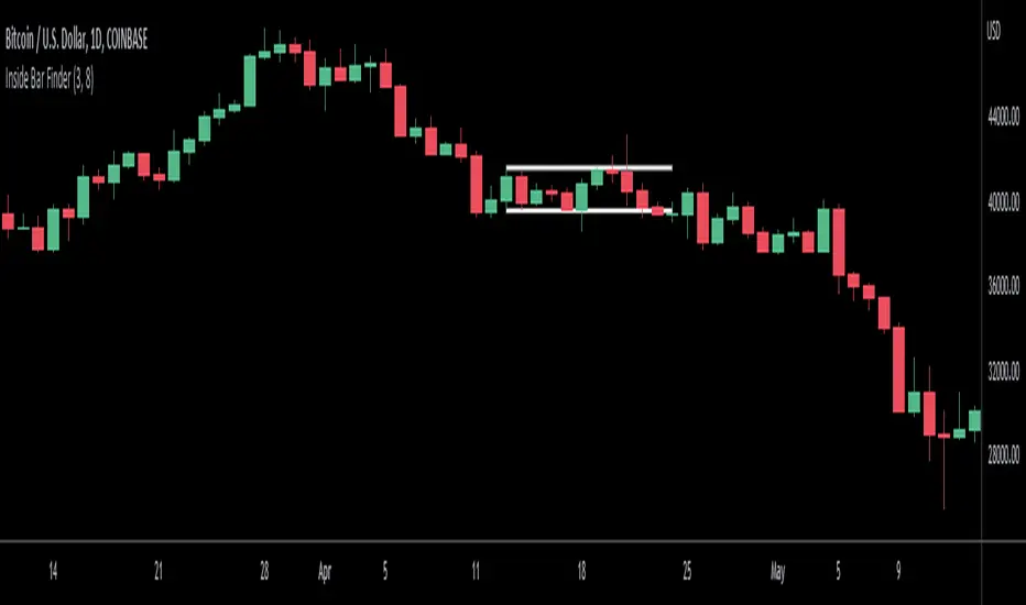Inside bars occur when the range of a candlestick falls entirely within the previous candlestick's range. This indicates volatility contraction which often leads to volatility expansion, i.e. large price movements.