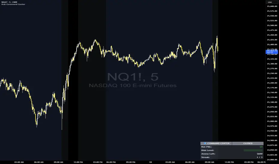Unlike automated trackers, this tool relies on Manual Accountability. By manually inputting your P&L after every trade, you engage your prefrontal cortex (logic), breaking the "trance" of emotional trading. This script visualizes your Daily Loss Limit not as a number, but as "Ammo"—a resource bar that depletes as you take risks.