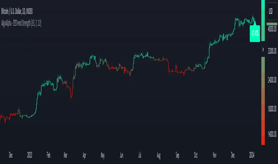 🚀🎉 Introducing the Candlestick Trend Strength by AlgoAlpha, a dynamic TradingView indicator designed to visually communicate the strength and direction of market trends right on your charts! 🕯️💪