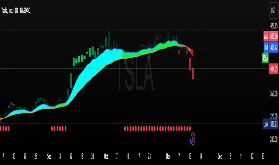 | `fill(p1, p2, color=cloudColor)` | **Main EMA Cloud** – colored by regime |