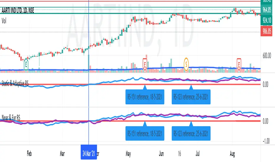 For example, if the market index has made a recovery from a deep crash 80 sessions ago, set the near RS length to 80 and keep the far RS length to a fixed value say, 123 corresponding to 6 months. This will help you gauge the historical vs the recovery strength of your interested symbol before and after the "event".