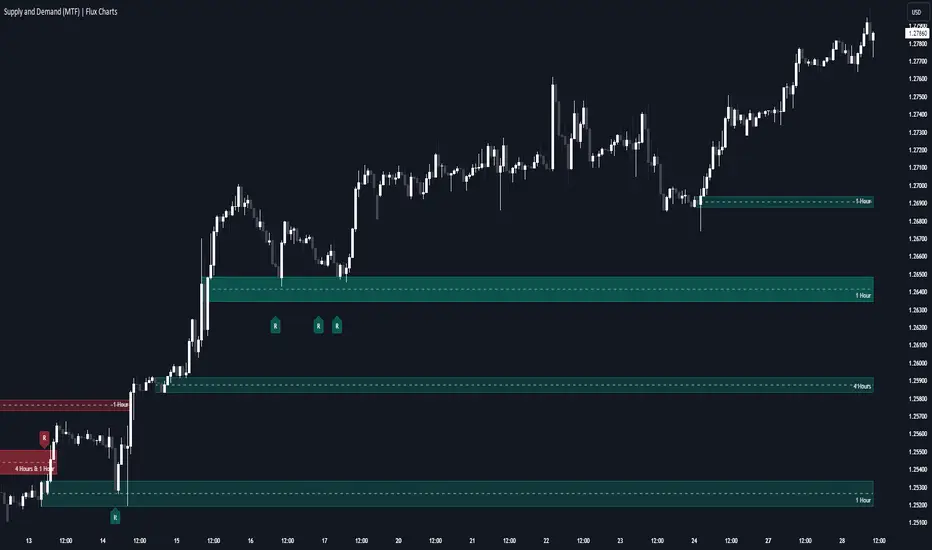 - Renders Supply and Demand Zones Across 3 Timeframes