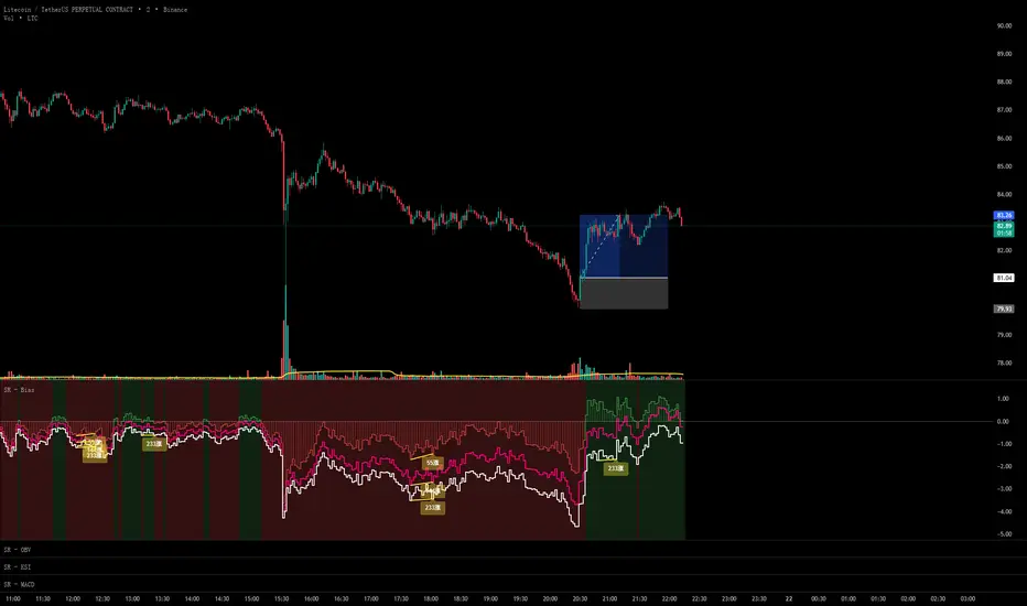 Scout Regiment - Bias is a technical indicator that measures the deviation (bias) between the current price and exponential moving averages (EMAs). It helps traders identify overbought/oversold conditions, trend strength, and potential reversal points through divergence detection.