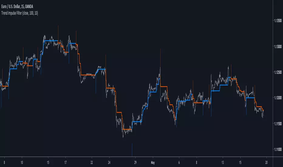 There is a lot of indicators similar to this one, however i think this one don't share the same calculation method and this is why i share it. This indicator aim to forecast price direction using an exponential filter architecture using highest and lowest information for the estimation of a smoothing variable. This filter is similar to the average Max-Min filter.