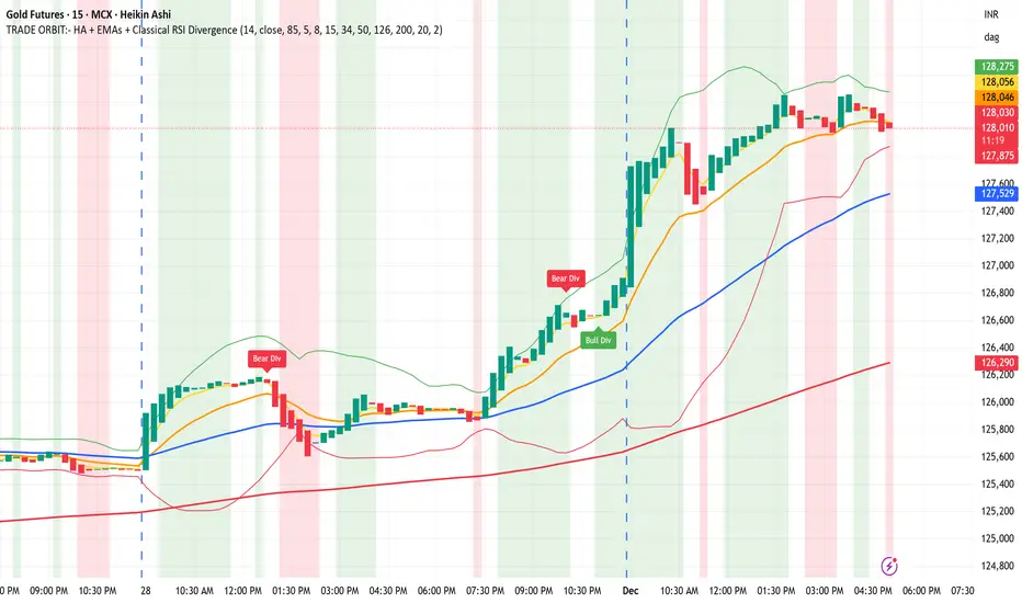 TRADE ORBIT:- HA + EMAs + Classical RSI Divergence