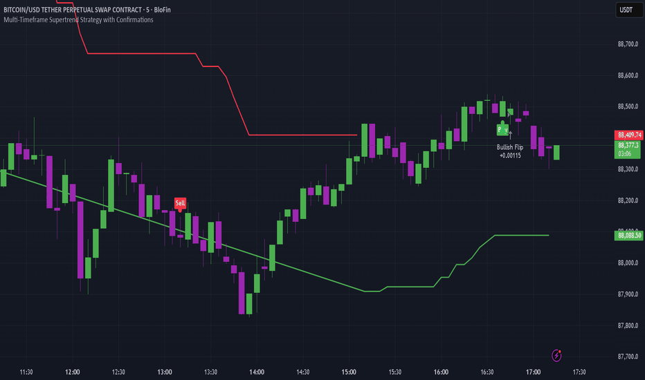 o Buy/Sell Signals: Can be customized with different colors and shapes (triangle up for buys, triangle down for sells).