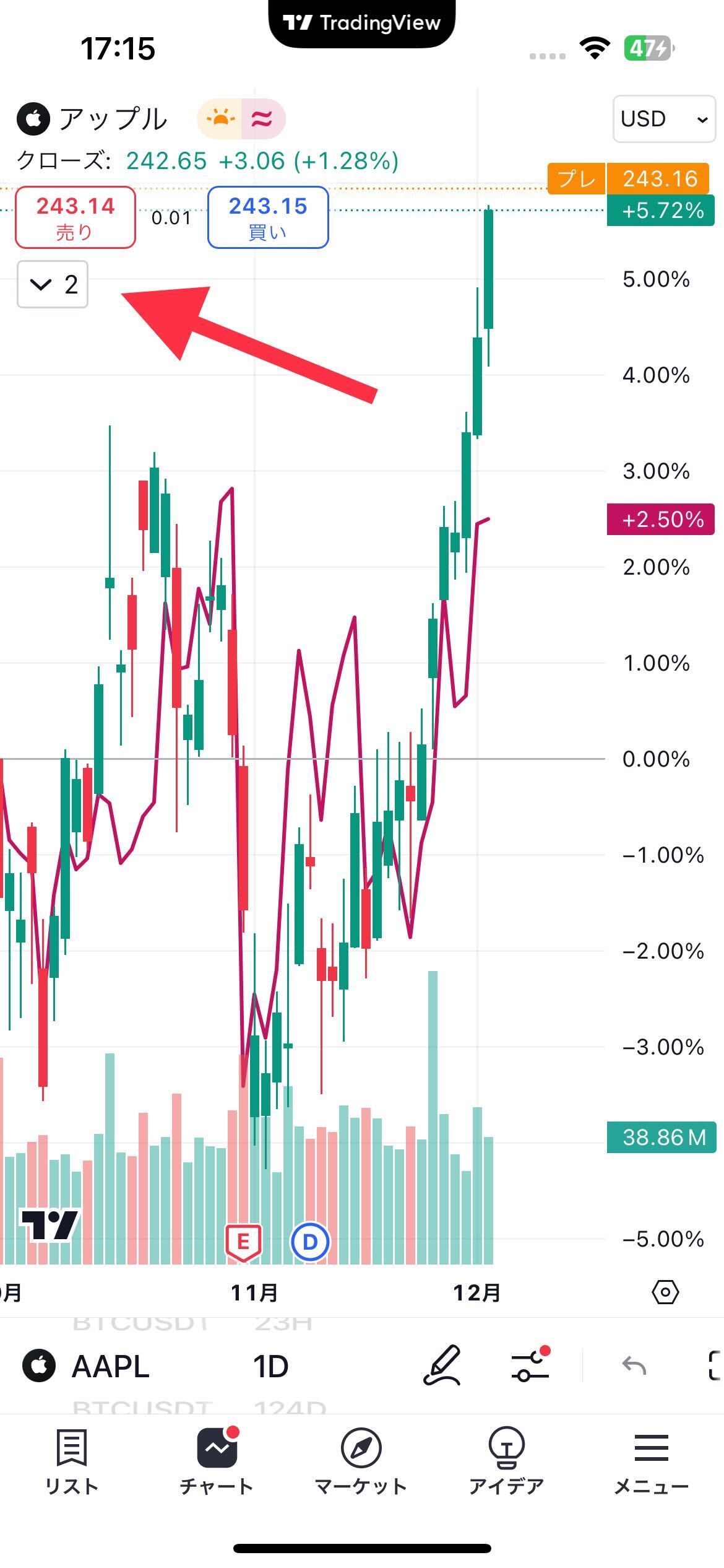 インジケーターを削除/設定変更する方法は?インジケーターの削除や設定変更は、まずシンボル名の下の「+」アイコンをクリックしてチャートの凡例部分を表示します:その後以下の手順を行ってください:インジケーターの削除は、ゴミ箱のアイコンをクリックします。インジケーターの設定変更は、歯車のアイコンをクリックします。前前モバイルアプリで言語を切り換える方法は?次次Androidアプリでインジケーターの表示/非表示を切り替える方法は?スーパーチャートを開く