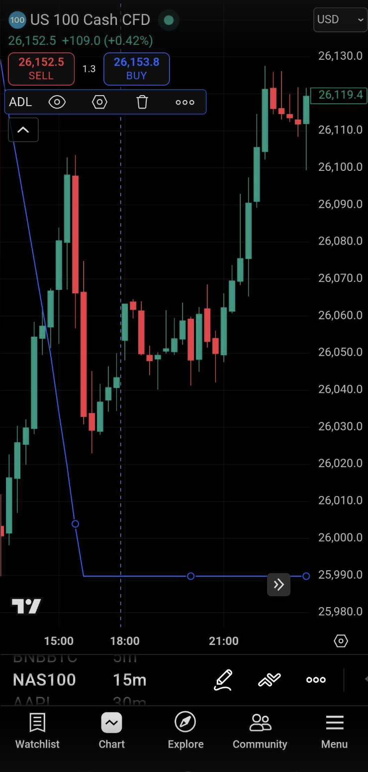 - チャート画面下のツールバーから、描画アイコンの右隣(左から2番目)にある「分析ハブ」メニューを開きます。