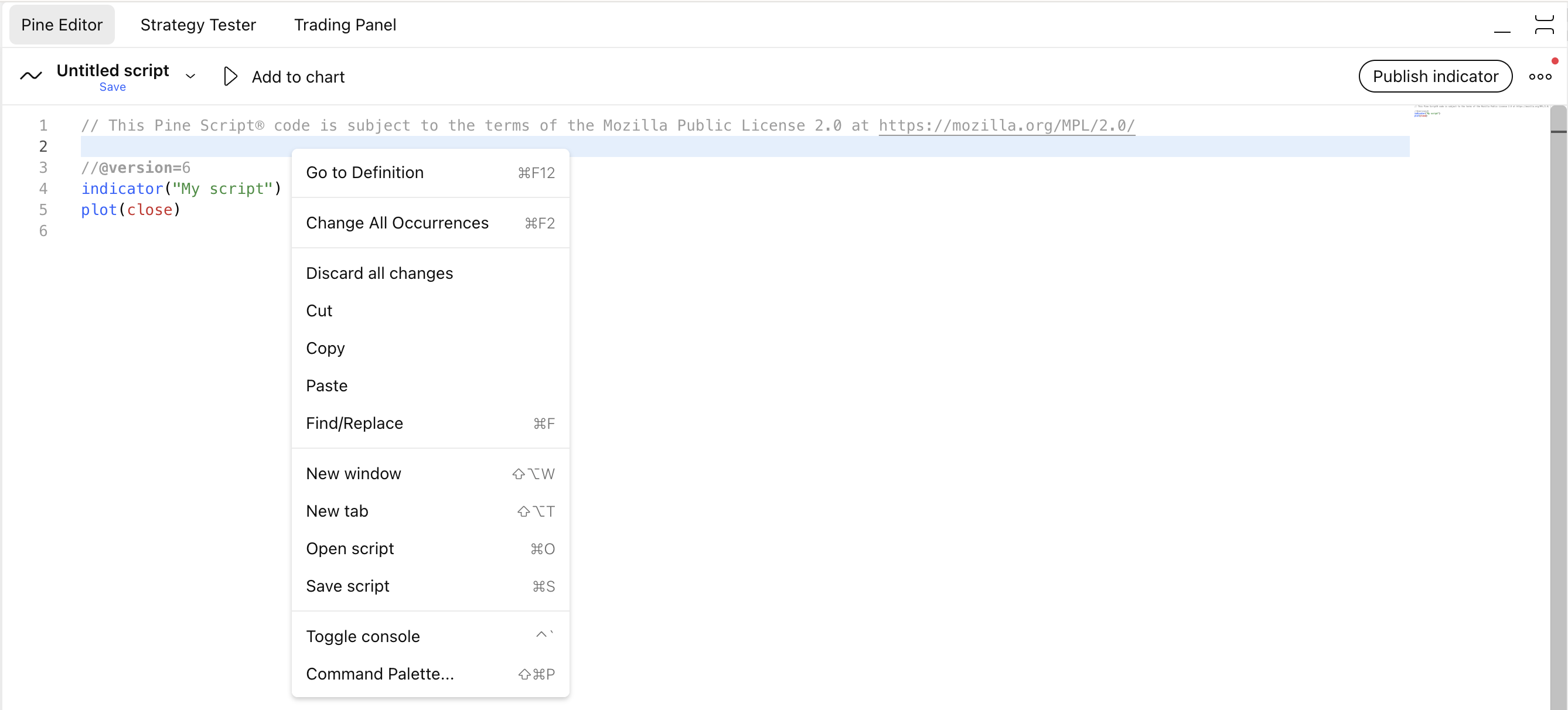 新バージョンのPineエディタには、Visual Codeでも利用されている多くの機能/コマンド/キーボードショートカットがあります。コマンドパレットを使ってそのすべてを確認することができます。コマンドパレットを開く方法は2つです: