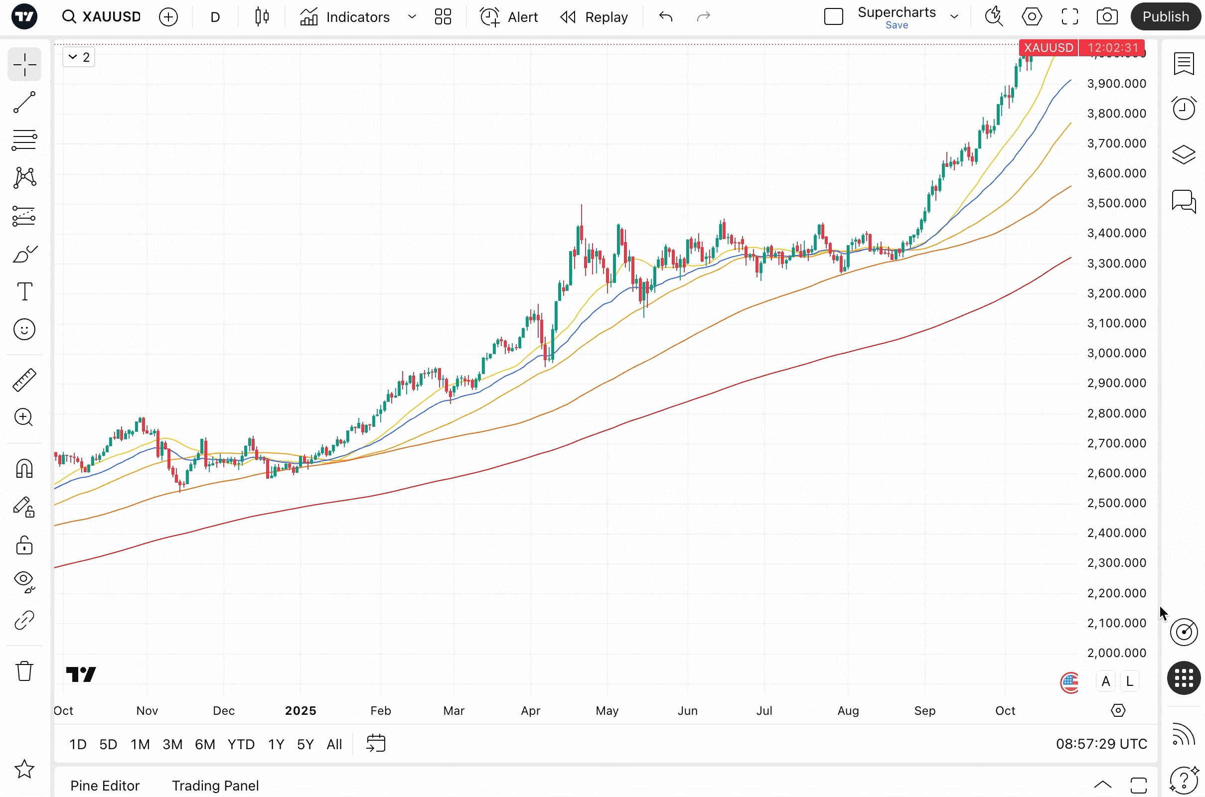 - テクニカル: 移動平均や交差、オシレーター、ボラティリティバンド、出来高、人気のローソク足パターンなどのインジケーターとシグナル